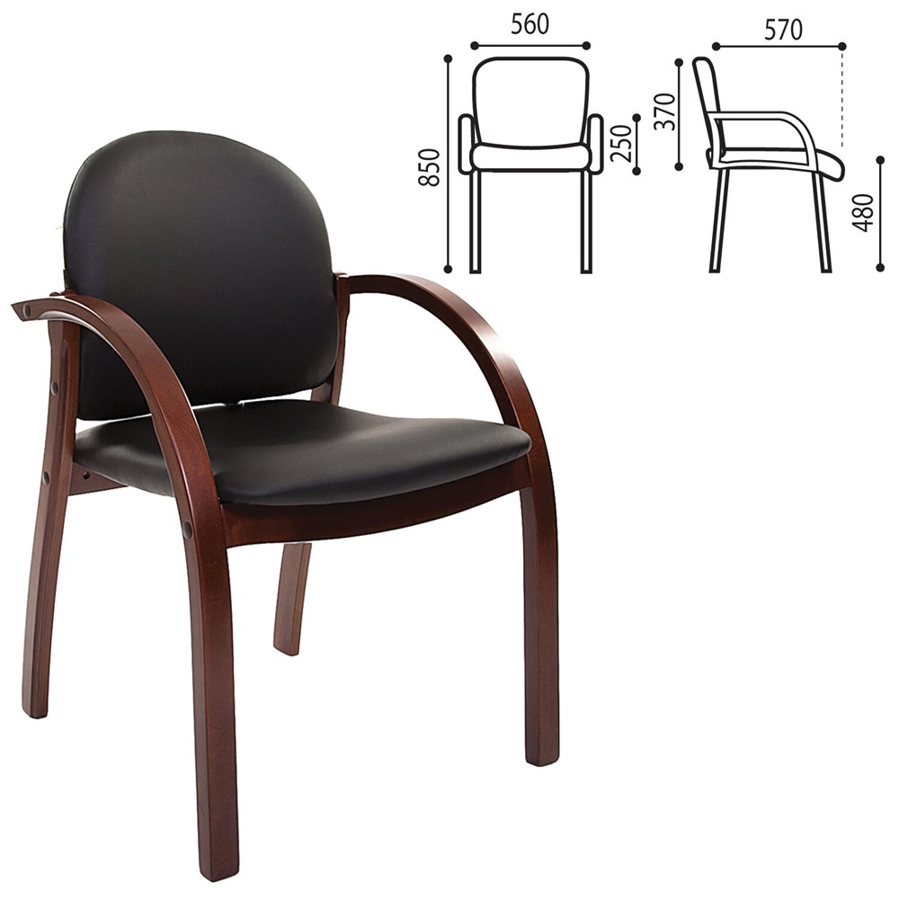 Классическое кресло для приемных и переговорных. Благодаря дизайну, лакированным деревянным элементам и обивке из экокожи класса "премиум" наполнит интерьер комнаты престижем и солидностью.Обивка выполнена из экокожи класса "премиум", по внешнему виду приближена к натуральной коже и не уступает ей по потребительским свойствам: износостойка, приятна на ощупь, воздухопроницаема, т.к. имеет хлопчатобумажную основу, не вытягивается и не выцветает.