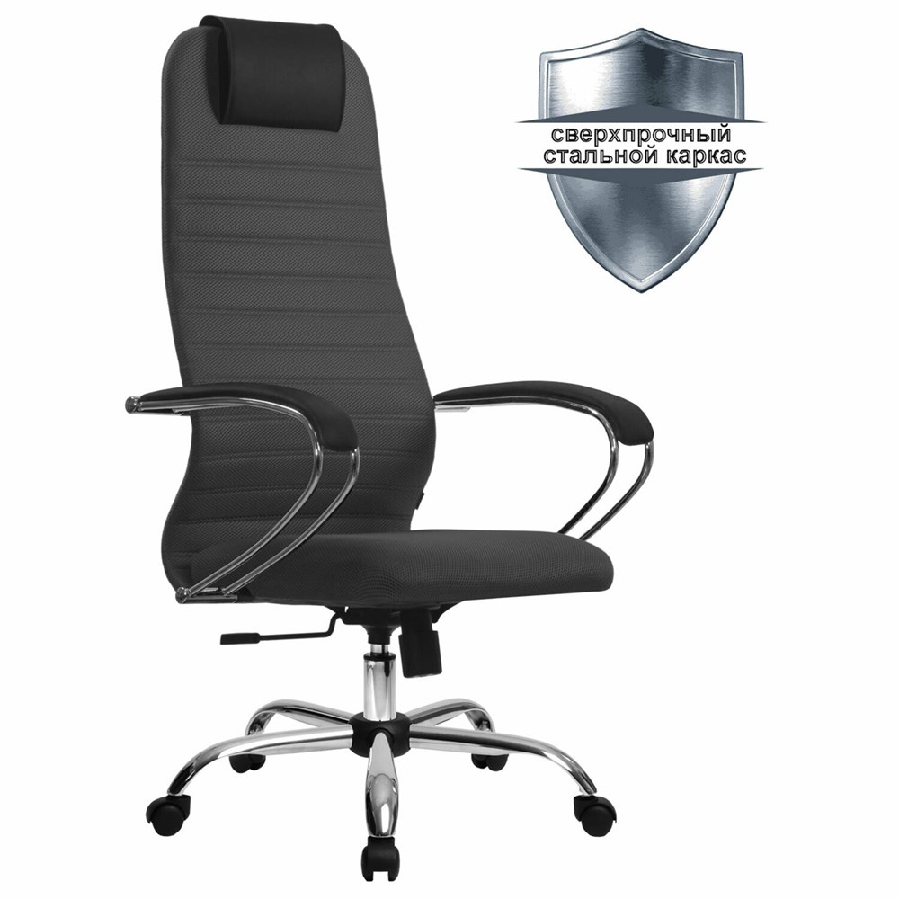 Кресло офисное МЕТТА "SU-B-10" хром, ткань-сетка, сиденье и спинка мягкие, темно-серое
