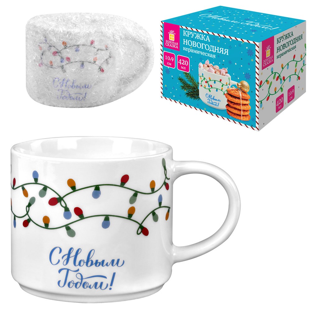 Кружка новогодняя 420 мл, "Гирлянда", 10х9 см, каменная керамика, ЗОЛОТАЯ СКАЗКА, 592546
