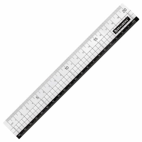 Линейка пластик 20 см BRAUBERG, прозрачная, черно-белая печать, европодвес, 210742