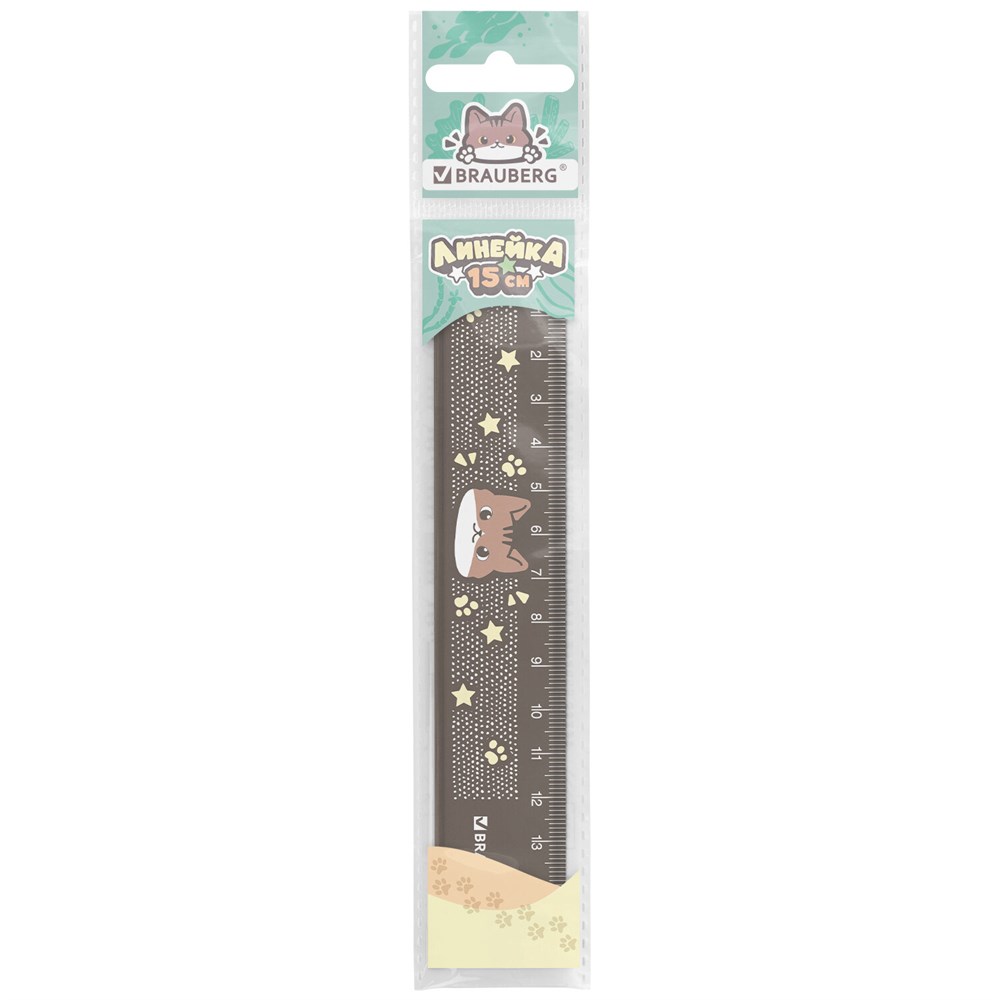 Линейка пластиковая 15 см BRAUBERG "МИЛЫЕ КОТЫ", тонированная, ассорти, 210865