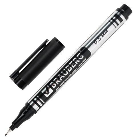 Маркер перманентный BRAUBERG "Jet", ЧЕРНЫЙ, супертонкий металлический наконечник 0,5 мм,150507