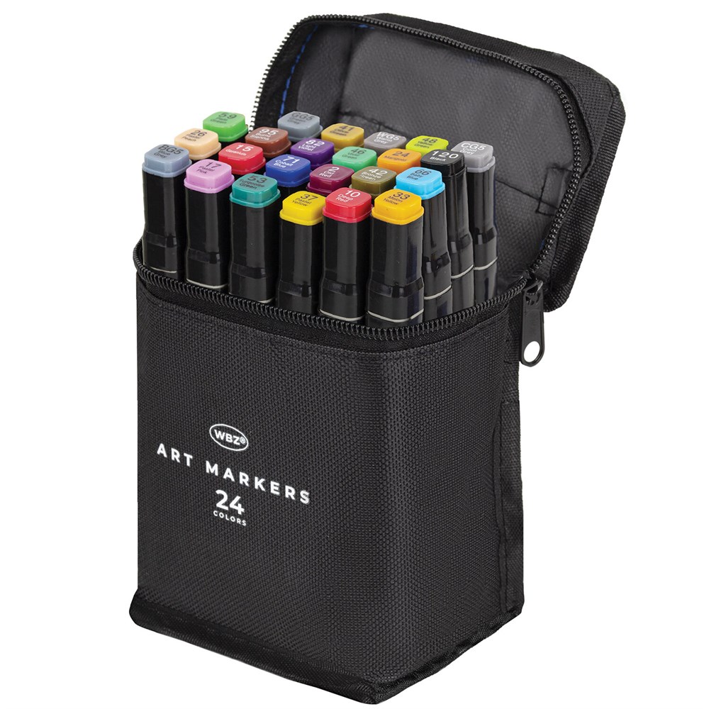 Маркеры для скетчинга двусторонние, НАБОР 24 шт., базовые цвета, в чехле, WBZ (ВБЗ), 152571