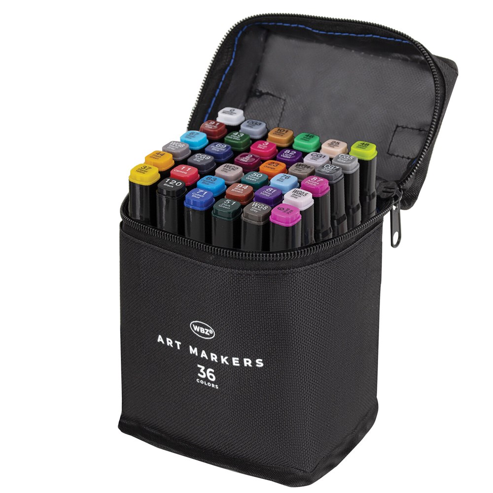 Маркеры для скетчинга двусторонние, НАБОР 36 шт., текстильный чехол, WBZ (ВБЗ), 152572