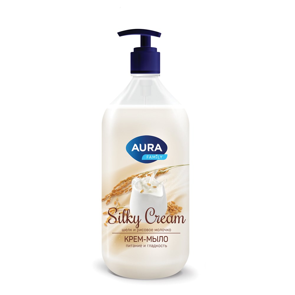 Крем-мыло AURA FAMILY "Шелк и экстракт риса" с экстрактами шелка и рисового молочка бережно очищает, не вызывая сухости и раздражения, окутывает кожу нотками ненавязчивого нежного аромата!Крем-мыло AURA FAMILY "Шелк и экстракт риса" обязательно понравится взрослым и детям. А большой формат упаковки поможет сэкономить бюджет семьи.