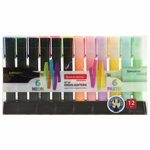 Набор текстовыделителей 12 ЦВЕТОВ на подставке, BRAUBERG "ORIGINAL", линия письма 1-5 мм, 151699
