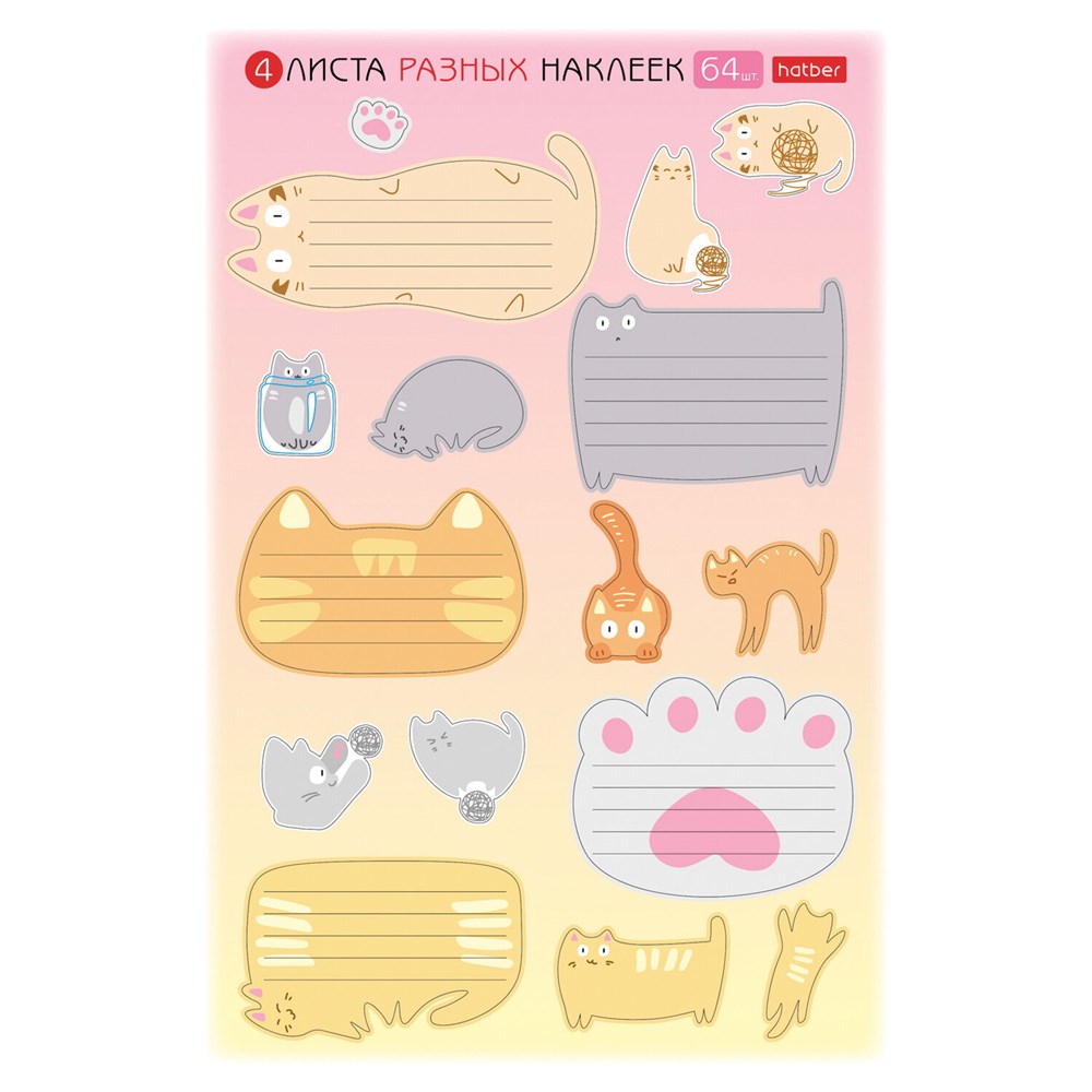 Наклейки "КОТОВАСИЯ" для маркировки школьных принадлежностей, НАБОР 4 листа, 64 наклейки, HATBER, 4Н5н