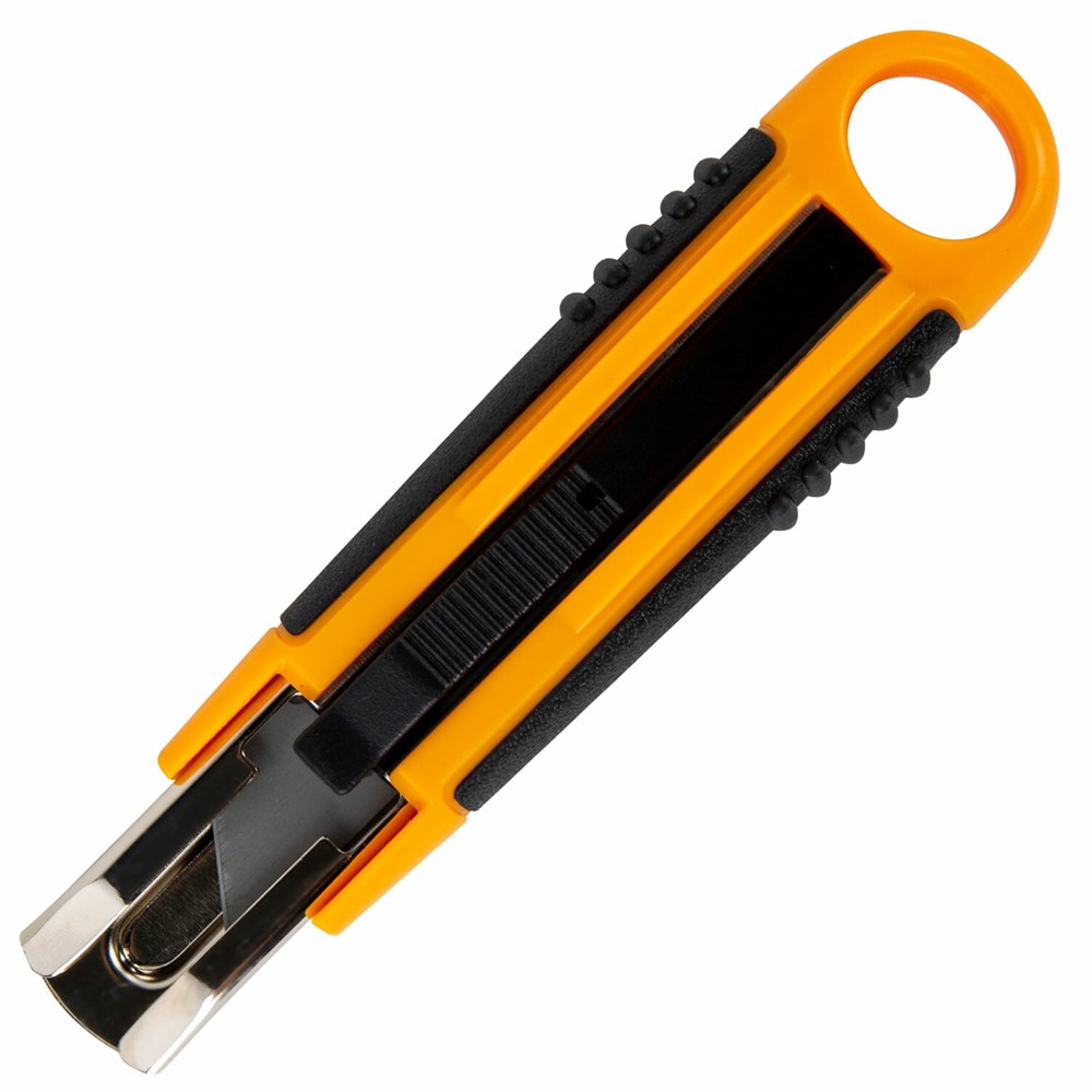 Универсальный мощный нож с возвратной пружиной BRAUBERG reSTART – инструмент, который поможет при резке бумаги, пластика, картона и прочих плотных и вязких материалов: линолеума, гипсокартона, ковролина.Трапециевидное лезвие шириной 18 мм позволяет использовать его для резки более плотных и тонких материалов. Нож снабжен возвратной пружиной и антискользящими вставками. Может использоваться при отделочных работах или в домашнем хозяйстве при разрезании толстого и плотного гипсокартона или вязких ковровых покрытий. Затупившееся лезвие можно поменять, тем самым вернув ножу былую остроту.