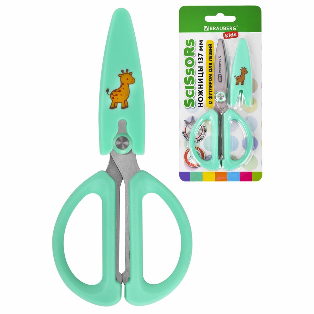 Универсальные ножницы BRAUBERG KIDS для работы с бумагой и картоном идеально подойдут для детского творчества, а яркий дизайн превратит работу с ножницами в легкое и увлекательное занятие!Яркие детские ножницы снабжены резиновыми рукоятками пастельно-мятного цвета и чехлом. Ребенок без труда сможет пользоваться ножницами, так как их длина всего 137 мм. Симметричные ручки помогают уменьшить нагрузку на руку ребенка даже при интенсивной и продолжительной работе. Ручки из резины повышенной прочности и лезвия из нержавеющей стали обеспечивают ножницам максимально долгий срок службы.