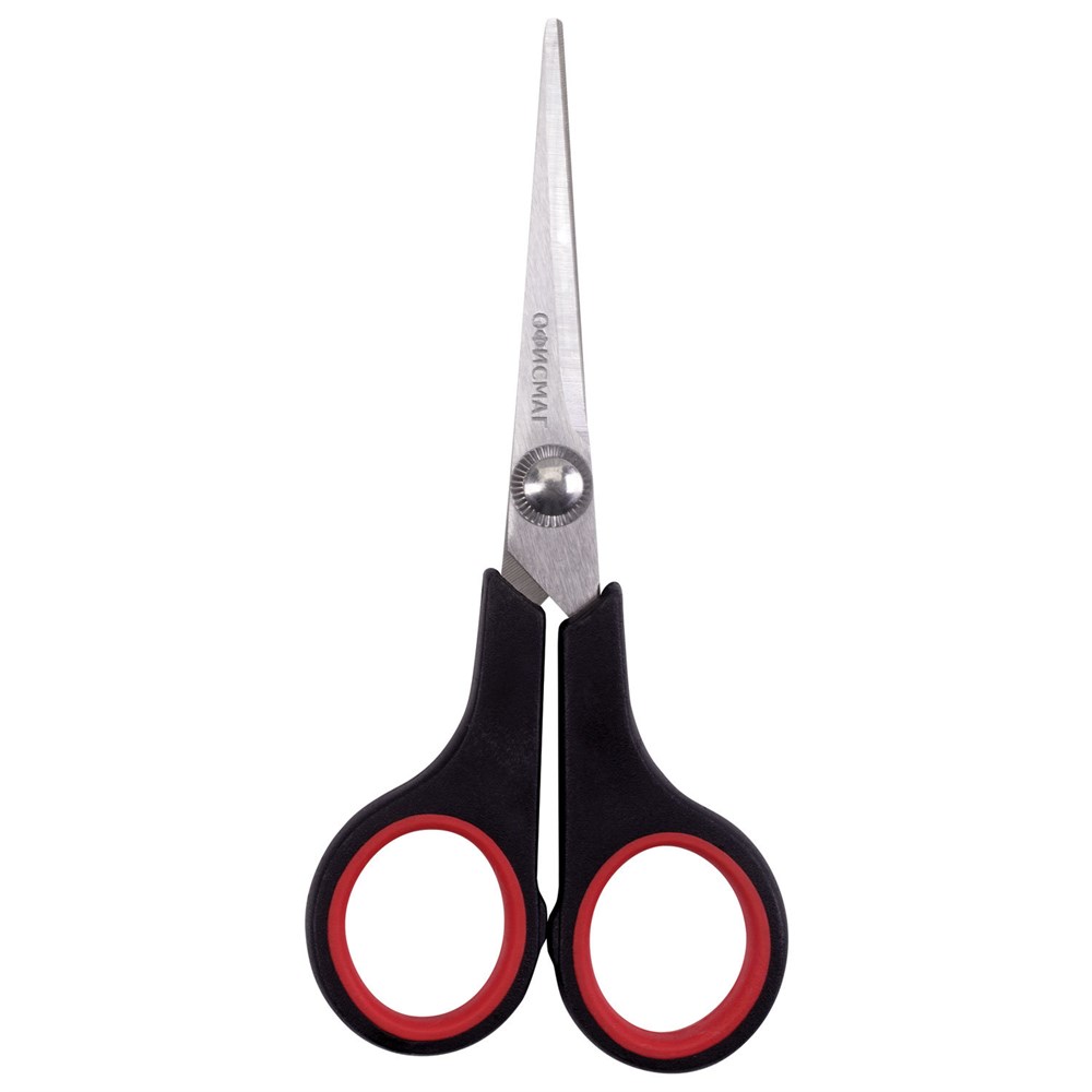 Ножницы ОФИСМАГ "Soft Grip", 140 мм, резиновые вставки, черно-красные, 3-х сторонняя заточка, 236454
