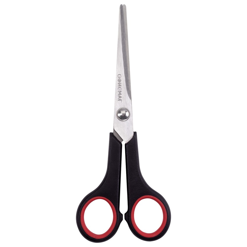 Ножницы ОФИСМАГ "Soft Grip", 165 мм, резиновые вставки, черно-красные, 3-х стороняя заточка, 236455