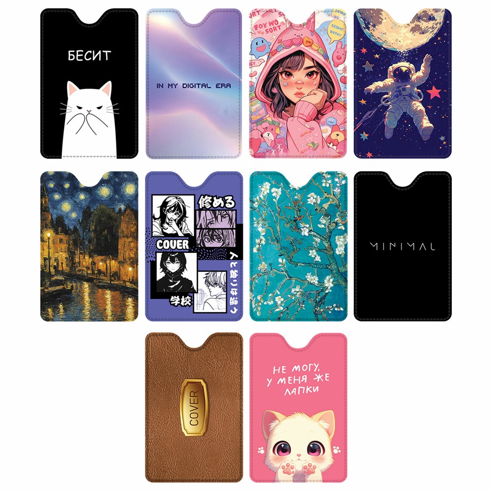 Обложка-карман для карт и пропусков с вырезом "Cool Mix", 95х65 мм, 10 дизайнов ассорти, ПВХ, STAFF, 238878