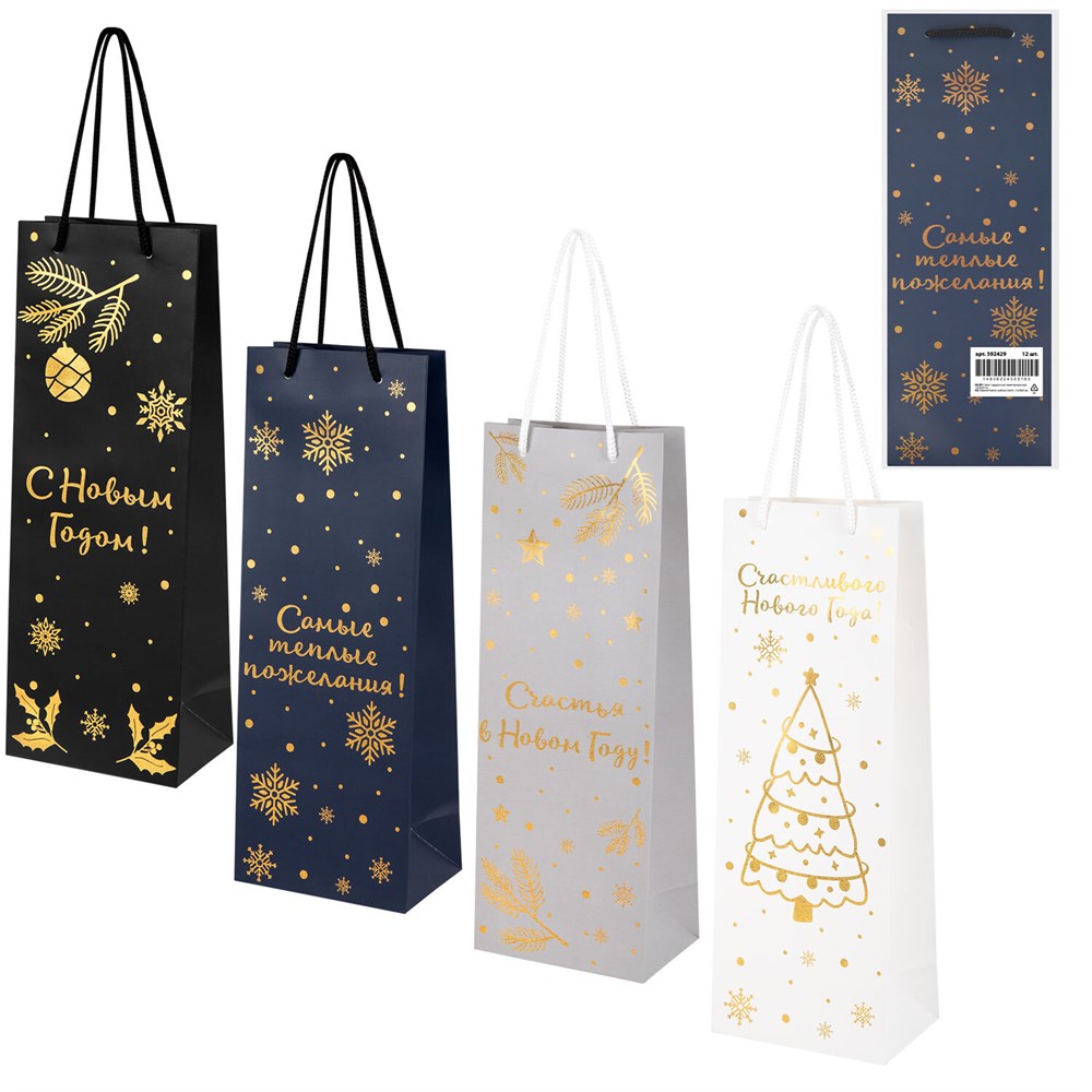 Подарочный новогодний пакет "Bottle #2" ЗОЛОТАЯ СКАЗКА – отличное решение для упаковки любого презента, которое позволит легко и со вкусом оформить выбранный подарок.Подарочный пакет новогодний, как и все виды подарочной упаковки, способен придать особый статус подарку. Также он является достаточно практичным изделием, которое может использоваться в повседневной жизни.