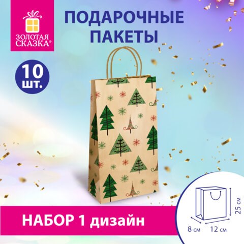 Пакет подарочный КОМПЛЕКТ 10 штук, 12x8x25 см, ЗОЛОТАЯ СКАЗКА, 591963