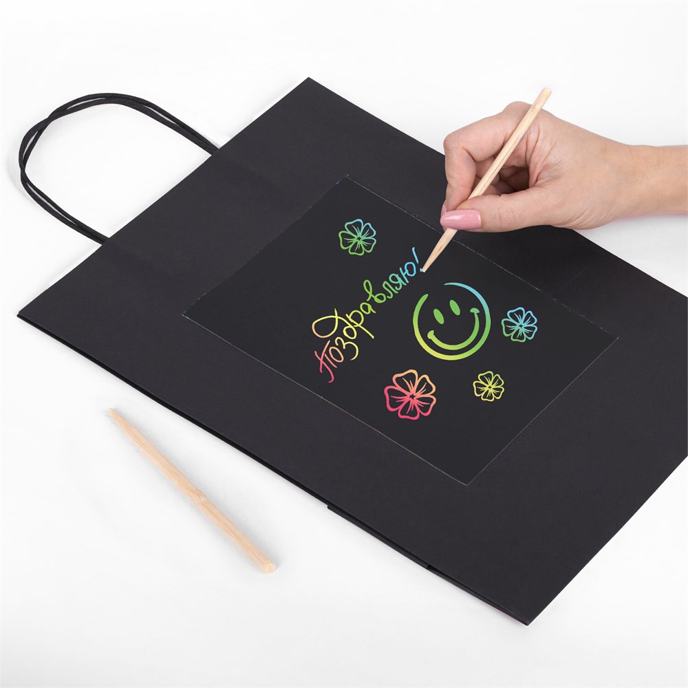 Пакет подарочный КОМПЛЕКТ 7 штук, 26x13x32 см, скретч-слой + стилус, "Black Kraft", ЗОЛОТАЯ СКАЗКА, 591970
