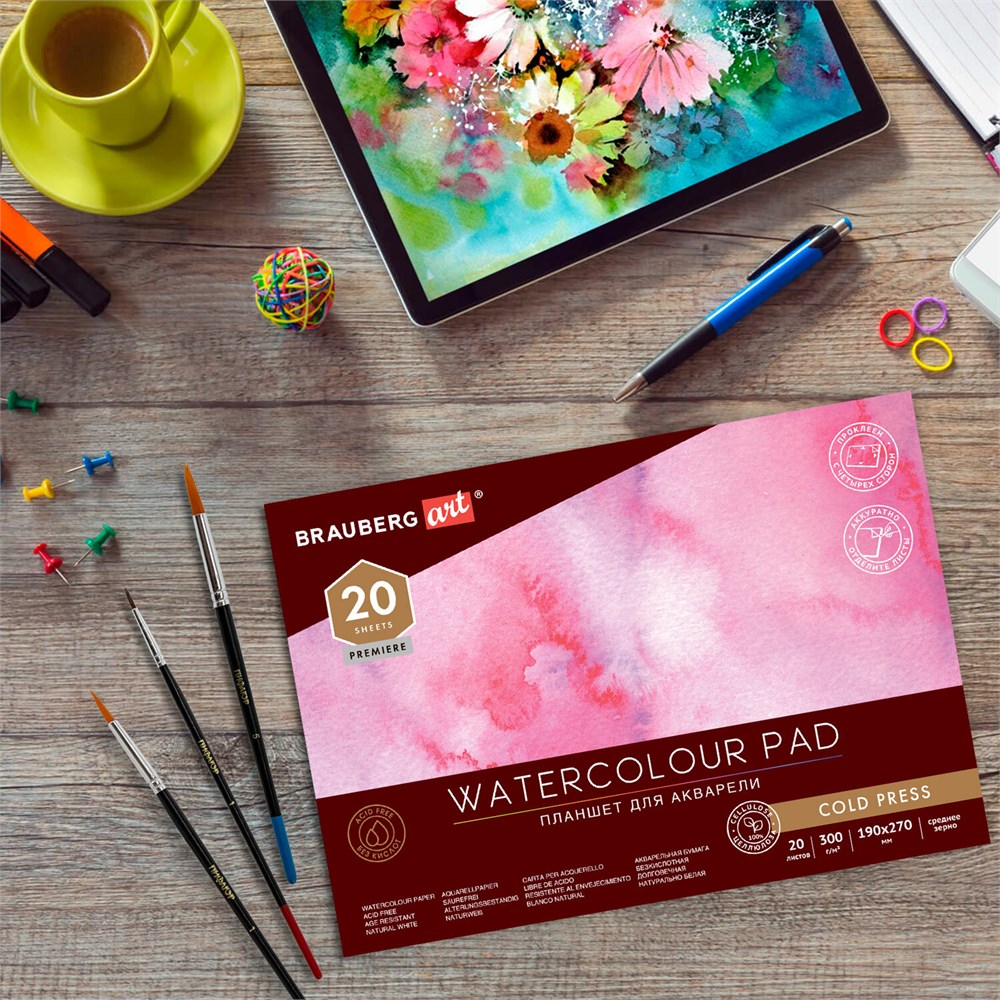 Папка для акварели/планшет, 300 г/м2, 190х270 мм, склейка, среднее зерно, 20 л., BRAUBERG ART PREMIERE, 113245