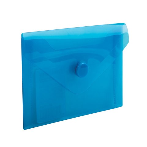 Папка-конверт с кнопкой МАЛОГО ФОРМАТА (74х105 мм), А7 (для дисконтных, банковских карт, визиток) прозр, синяя, 0,18 мм, BRAUBERG, 227323