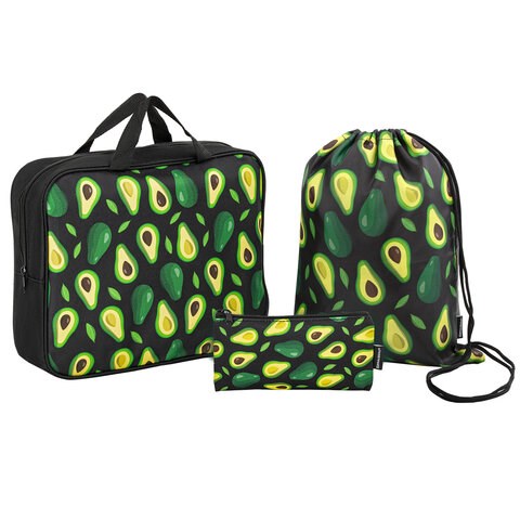 Папка на молнии с ручками А4, мешок для обуви 42х33 см, пенал 20х10 см, "Avocado" НАБОР BRAUBERG, 271433