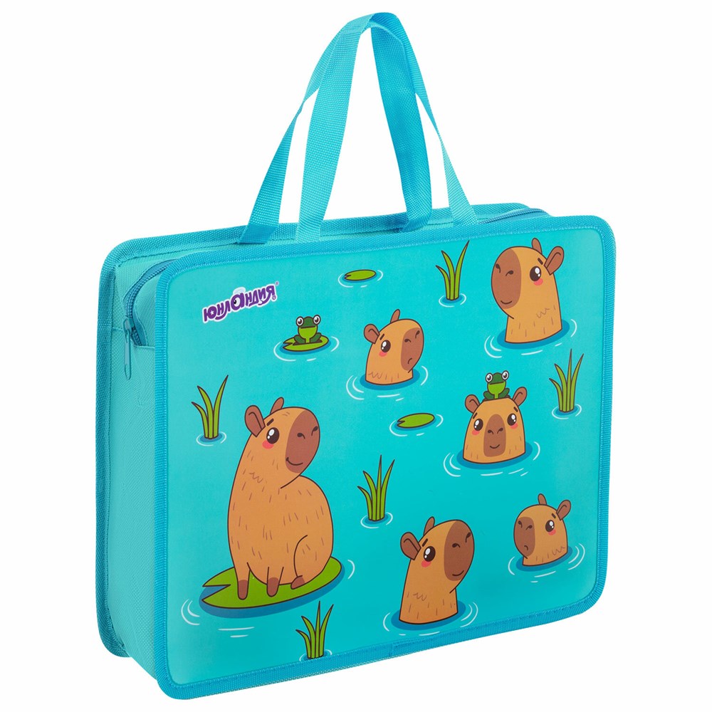 Папка на молнии с ручками ЮНЛАНДИЯ А4, 1 отделение, пластик, 80 мм, "Capy time", 272154