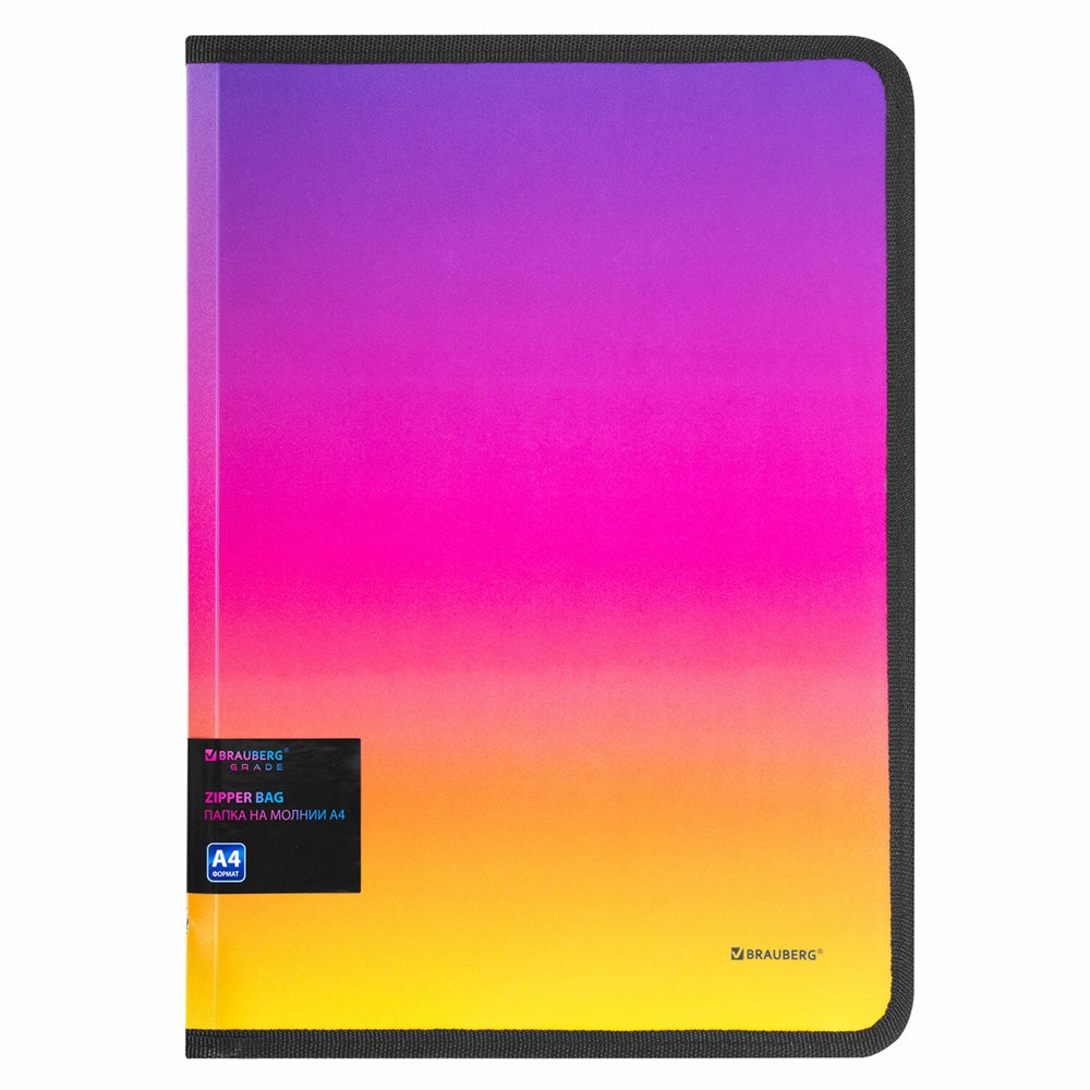 Папка объемная на молнии пластиковая BRAUBERG "Grade", А4, 330х240 мм, 600 мкм, желто-розовый градиент, 271976