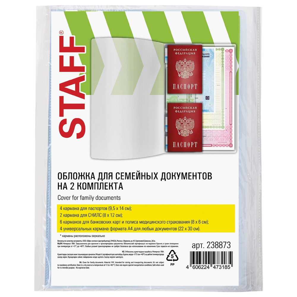 Папка-органайзер, обложка семейная для 2-х комплектов документов, А4, ПВХ, матовая, STAFF, 238873