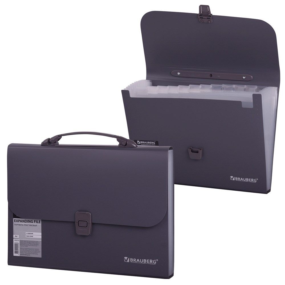 Папка-портфель пластиковая BRAUBERG А4 (327х254х30 мм), 13 отделений, серая, 221438