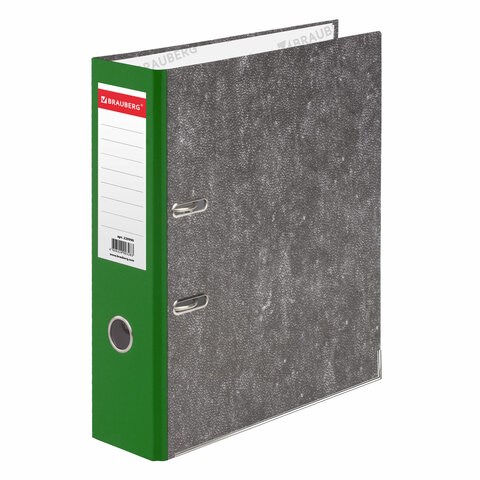Папка-регистратор BRAUBERG, фактура стандарт, с мраморным покрытием, 75 мм, зеленый корешок, 220990