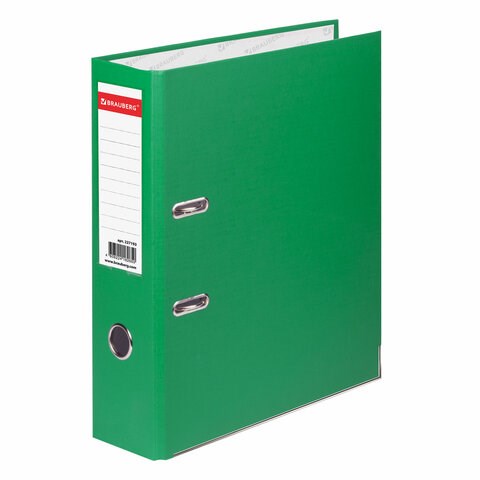 Папка-регистратор BRAUBERG с покрытием из ПВХ, 80 мм, с уголком, зеленая (удвоенный срок службы), 227193