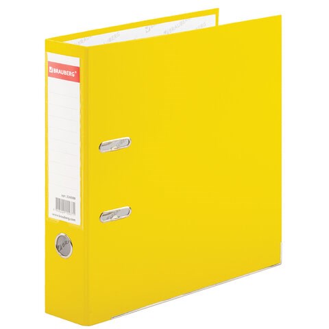Папка-регистратор, покрытие пластик, 75 мм, ПРОЧНАЯ, с уголком, BRAUBERG, желтая, 226599