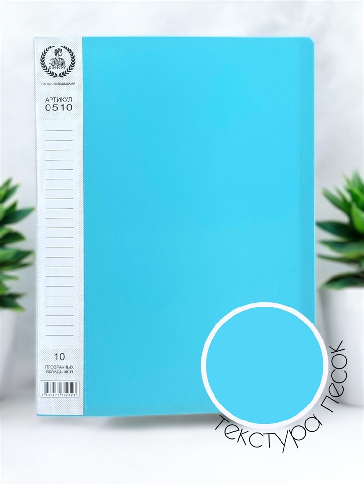 Папка с 10 прозрачными вкладышами "Консул", А4, пластик 0,5мм Цвет: пастель голубой