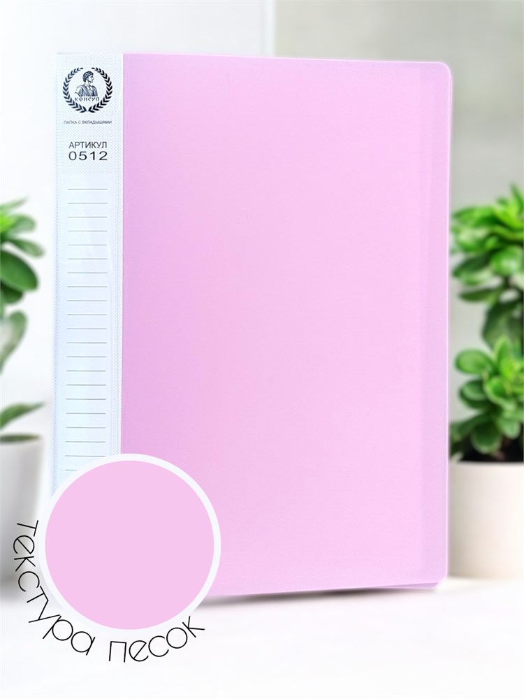 Папка с 10 прозрачными вкладышами "Консул", А4, пластик 0,5мм Цвет: пастель розовый