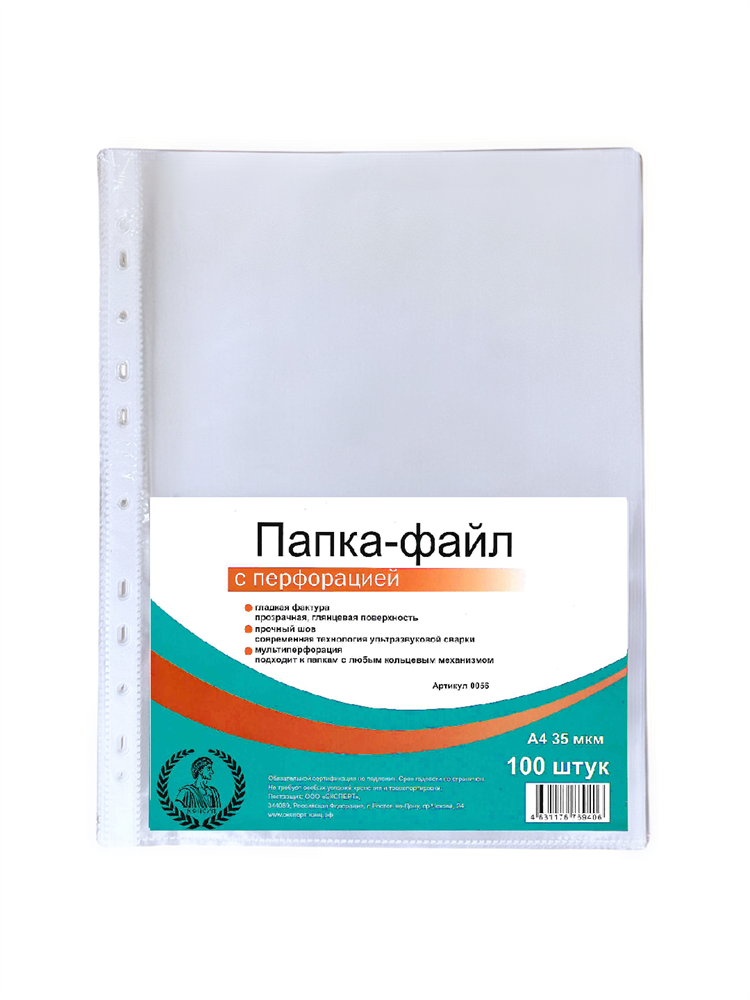 Папка-файл А4 "Консул" 35 мкм перфорированный комплект 100 шт гладкие, ВЫСОКОЕ КАЧЕСТВО