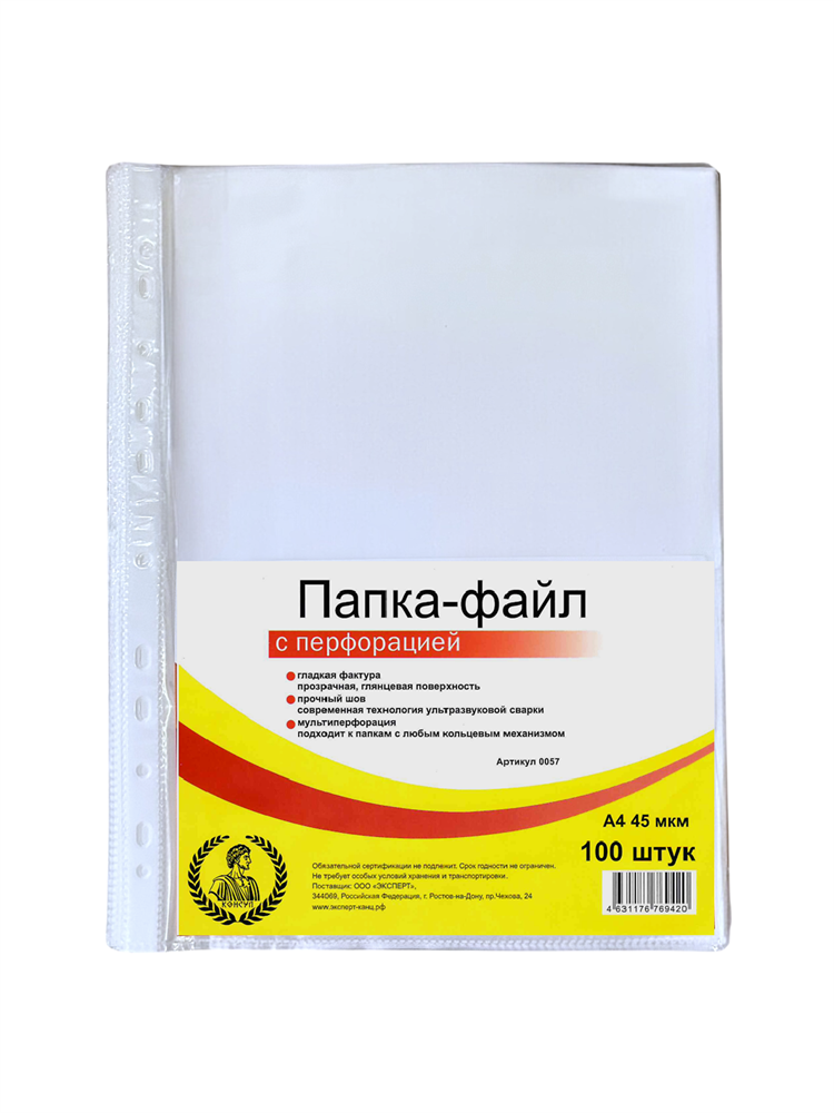 Папка-файл А4 "Консул" 45 мкм перфорированный комплект 100 шт гладкие, ВЫСОКОЕ КАЧЕСТВО