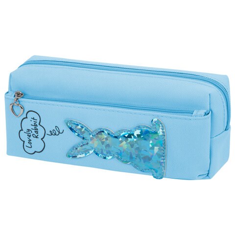 Пенал мягкий ЮНЛАНДИЯ, 2 отделения, полиэстер, "Bunny", голубой, 20х7х9 см, 228987