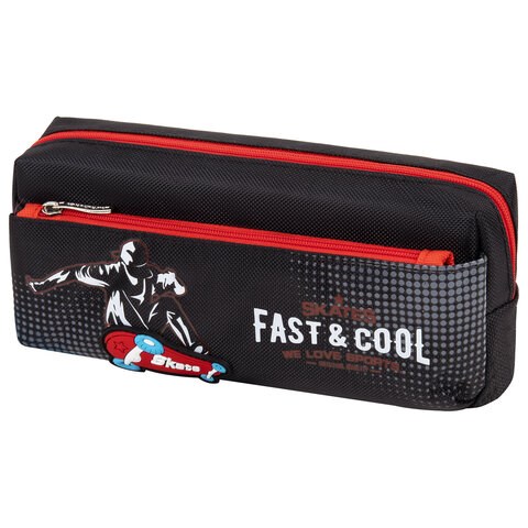Пенал мягкий ЮНЛАНДИЯ, 2 отделения, полиэстер, "Skate", черный, 21х6х9 см, 270276