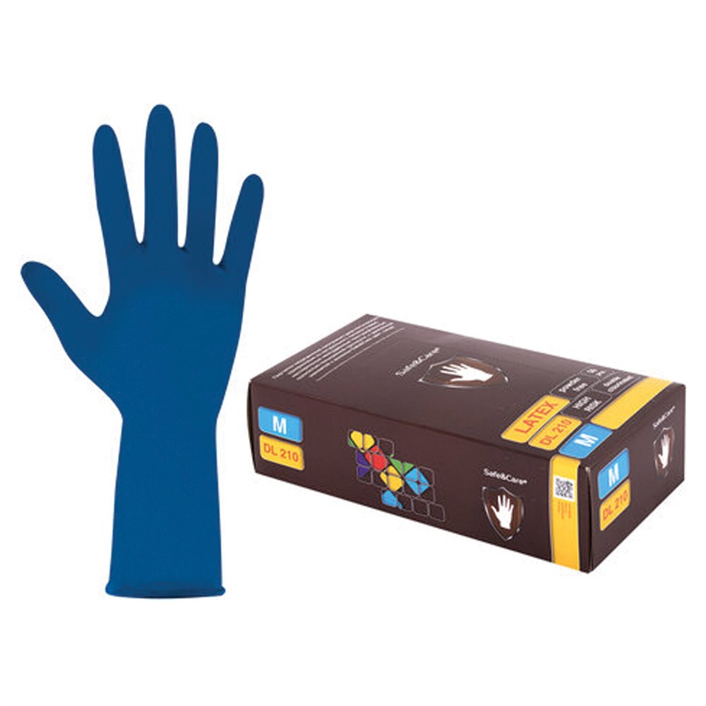 Перчатки латексные смотровые 25 пар (50 штук), размер 7-8, M (средний), синие, SAFE&CARE High Risk DL/TL210