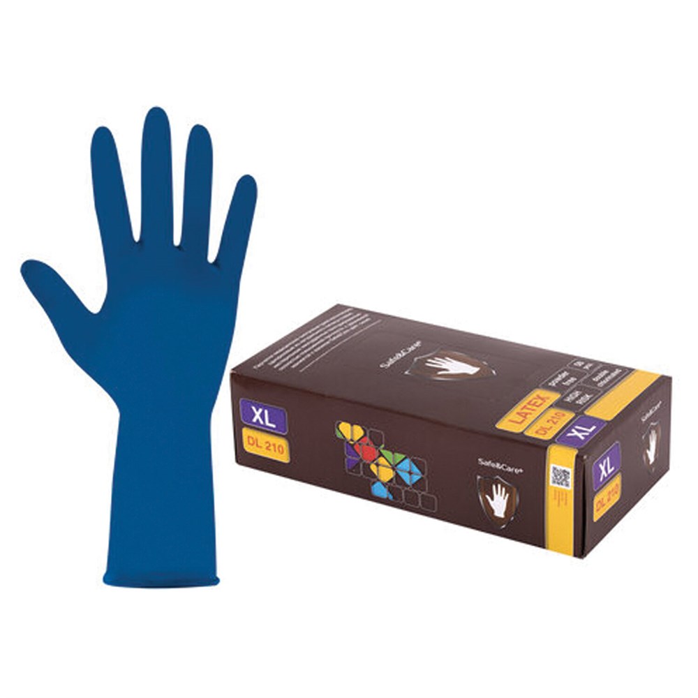 Перчатки латексные смотровые 25 пар (50 штук), размер 9-10, XL (очень большой), синие, SAFE&CARE High Risk DL/TL210