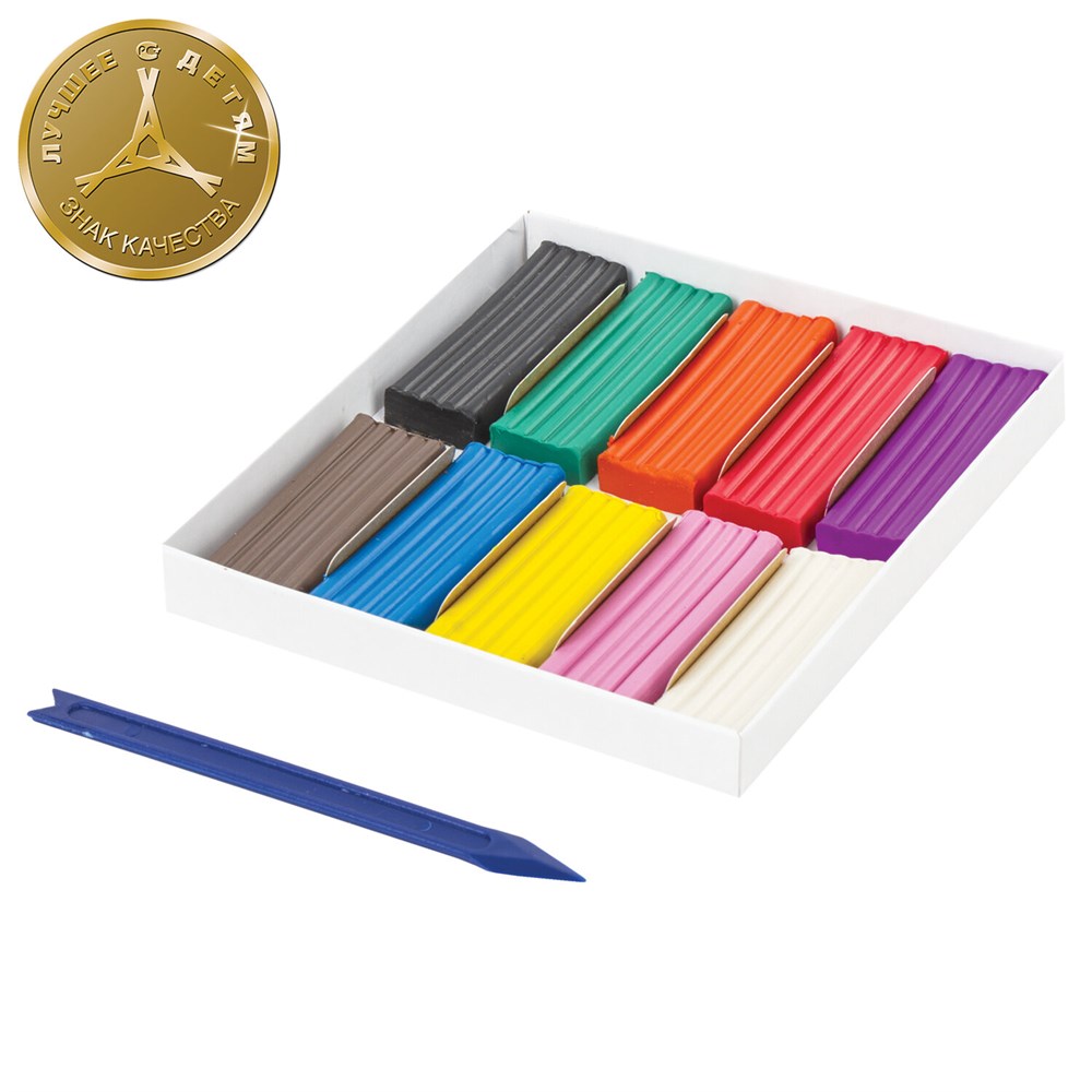 Пластилин классический ЮНЛАНДИЯ "ЮНЫЙ ВОЛШЕБНИК", 10 цветов, 200 г, СО СТЕКОМ, ВЫСШЕЕ КАЧЕСТВО, 105722