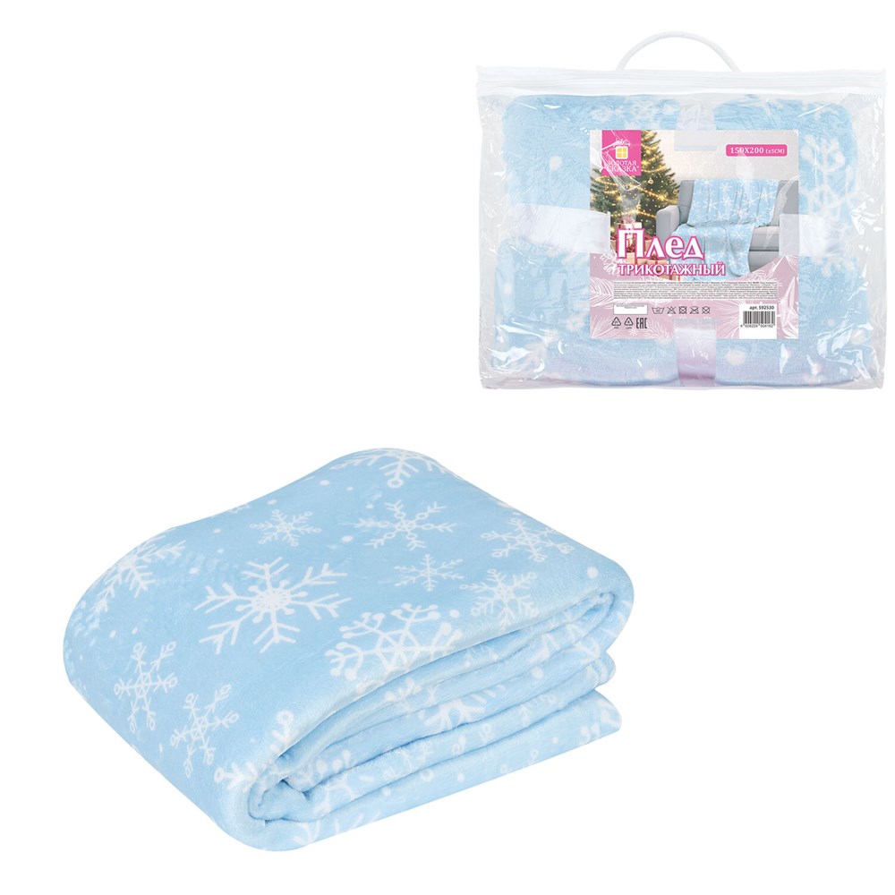 Плед новогодний, 150х200 см, "Снежинки", полиэстер, 210 г/м2, ЗОЛОТАЯ СКАЗКА, 592530