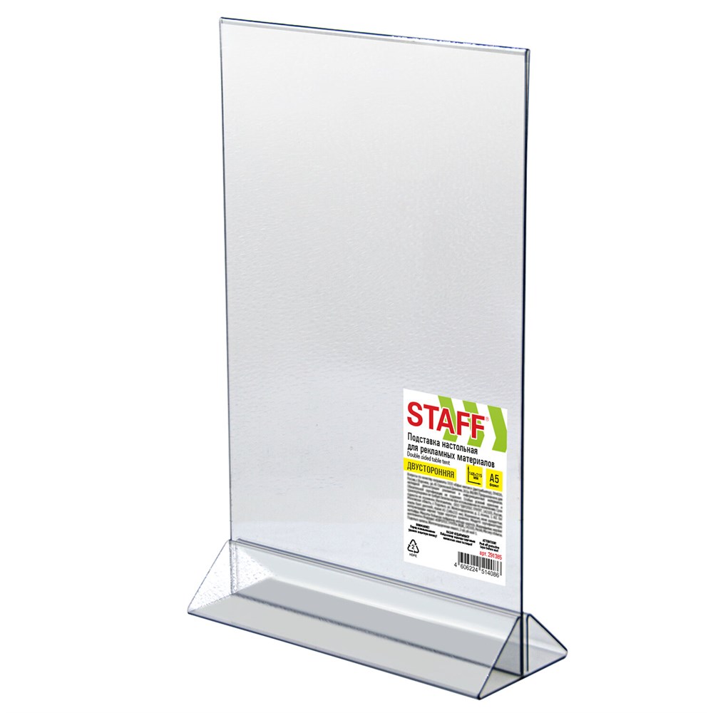 Подставка настольная для рекламных материалов ВЕРТИКАЛЬНАЯ (148х215 мм), А5, двусторонняя, STAFF, 291385