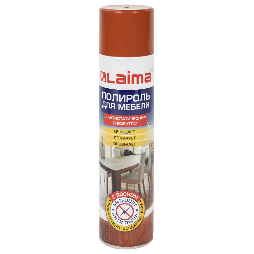)Полироль для мебели LAIMA «Антипыль» быстро и эффективно очищает, полирует и препятствует оседанию пыли, обладает антистатическим эффектом.