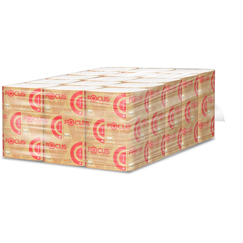 Полотенца бумажные 200 шт., FOCUS (Система H3) Premium, 2-слойные, белые, КОМПЛЕКТ 15 пачек, 23х23 см, V-сложение, 5083739