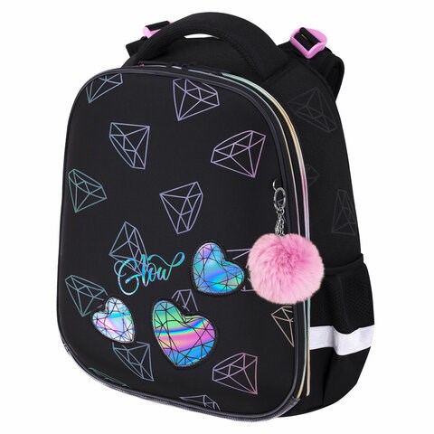 Ранец BRAUBERG LUMINOUS, 2 отделения, с брелоком, "Diamonds", СВЕТЯЩИЙСЯ РИСУНОК, 38х29х16 см, 272070