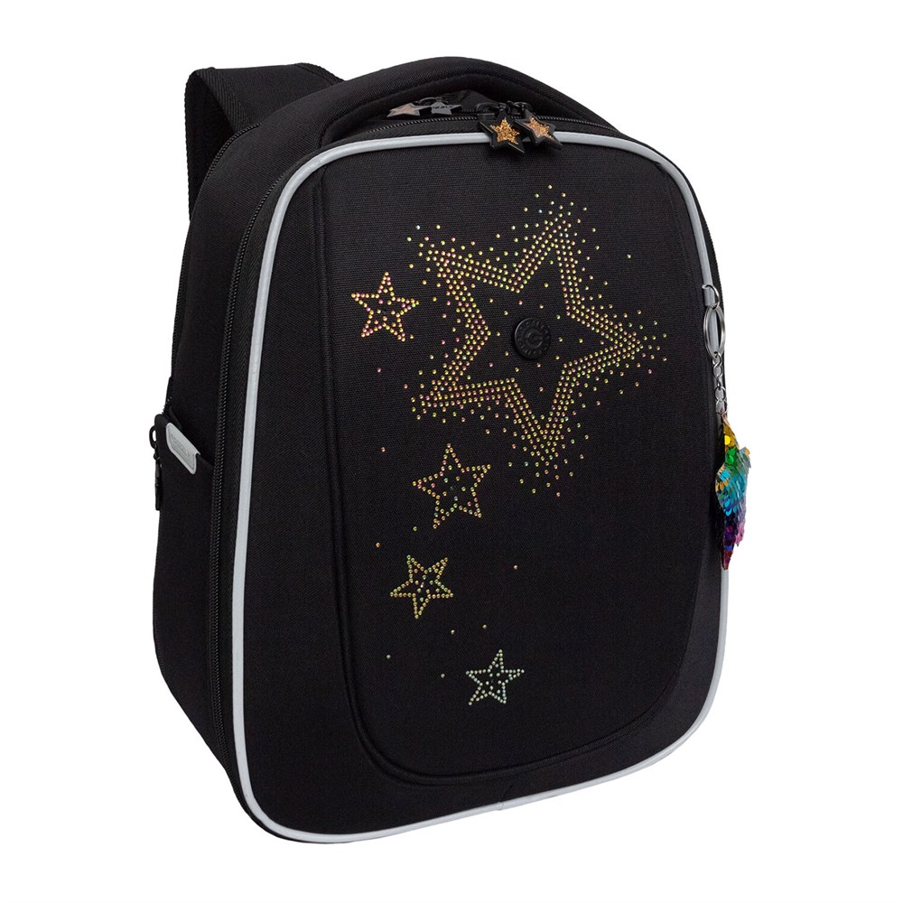Ранец GRIZZLY анатомическая спинка, с брелоком, для девочек, "STARS", 36х29х18 см, RAf-592-4/3