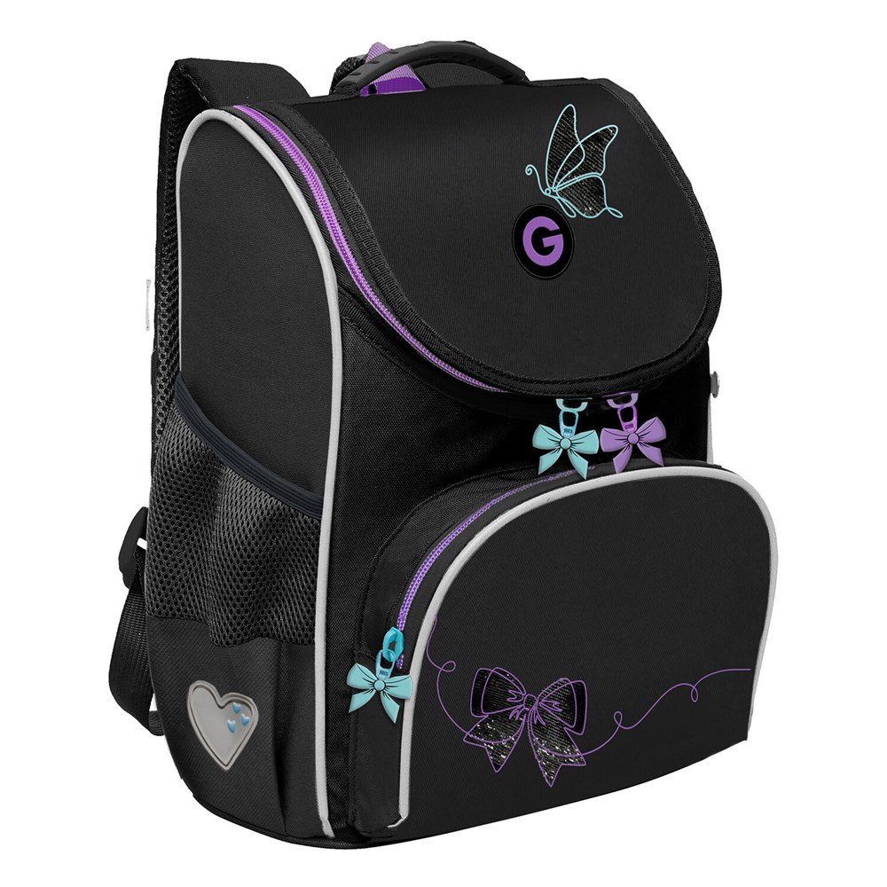 Ранец GRIZZLY анатомическая спинка, с мешком для обуви, для девочек, "BOWS", 33х25х13 см, RAm-584-8/1
