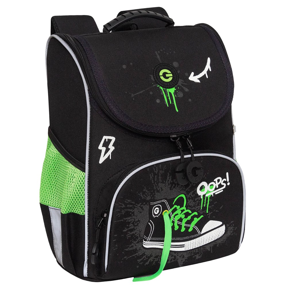 Ранец GRIZZLY анатомическая спинка, с мешком для обуви, для мальчиков, "SNEAKER", черный, 33х25х13 см, RAm-585-8/1