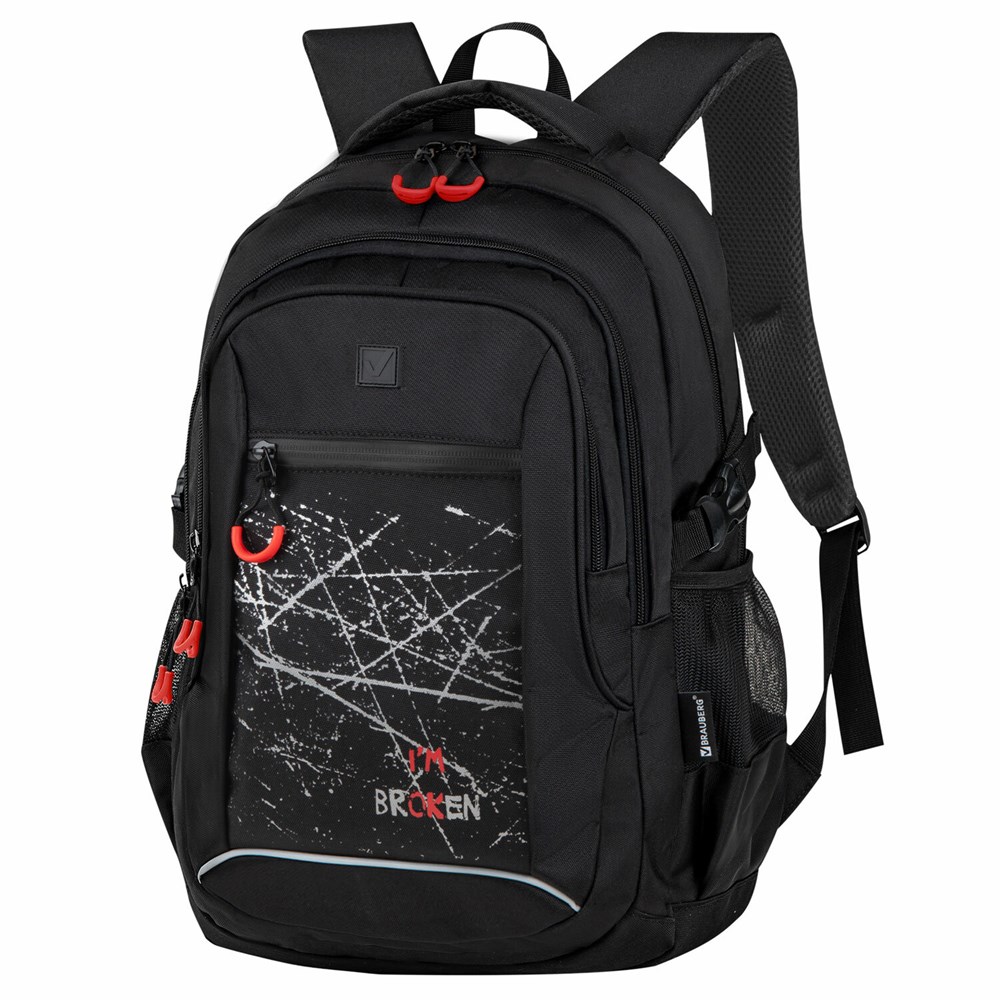 Рюкзак BRAUBERG CONTENT универсальный, 3 отделения, светоотражающий принт, "Br(ok)en", 47х33х18 см, 273845