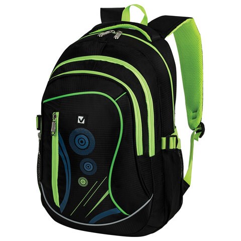 Рюкзак BRAUBERG HIGH SCHOOL универсальный, 3 отделения, "Неон", черный/салатовый, 46х31х18 см, 225520