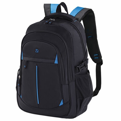 Рюкзак BRAUBERG TITANIUM универсальный, 3 отделения, черный, синие вставки, 45х28х18 см, 224734