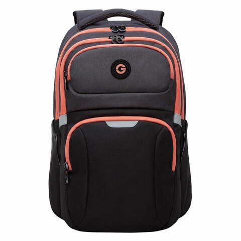 Рюкзак GRIZZLY школьный, анатомическая спинка, 2 отделения, для девочек, BLACK/ORANGE, 41х27х17 см, RD-342-1/2